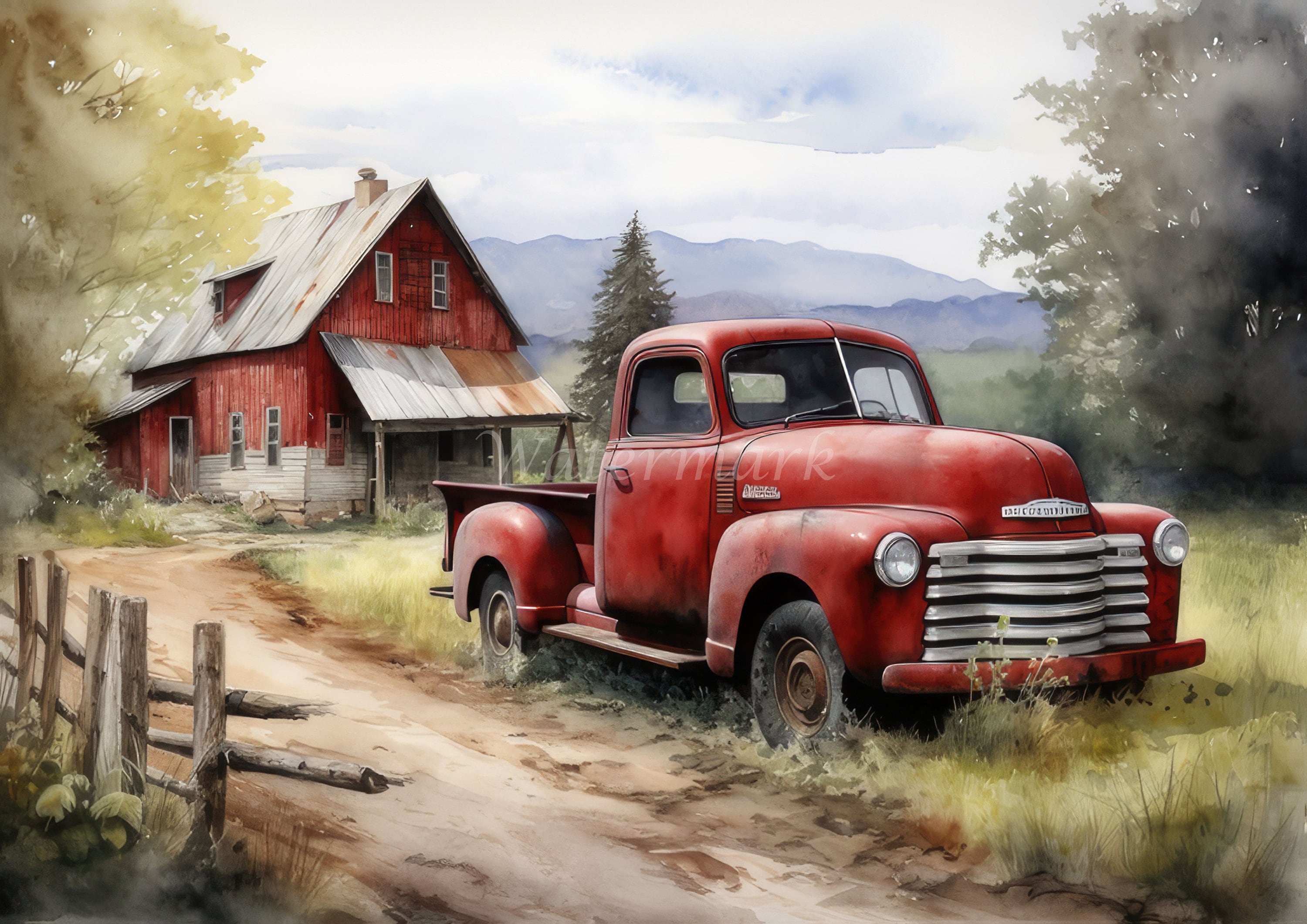 Red Barn Drawing Etsy Canada